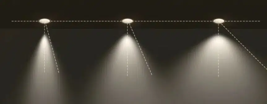 例如,考虑光束角为 10°、24° 和 38° 的嵌入式可调筒灯。 10°筒灯照射范围较小,核心光强突出,在被照射面上形成强烈的对比度。另一方面,38°LED筒灯照射范围较大,但核心光强较小,对比度较柔和。 24° LED 筒灯介于 10° 和 38° 选项之间,在核心光强度和溢出光之间取得平衡。